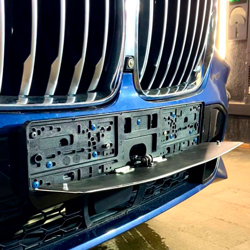 Представляет собой скрытый механизм без видимых петель. Такая конструкция полностью исключает возможность обнаружить механизм, а минимальная толщина рамки позволяет скрыть устройство за номерным знаком.